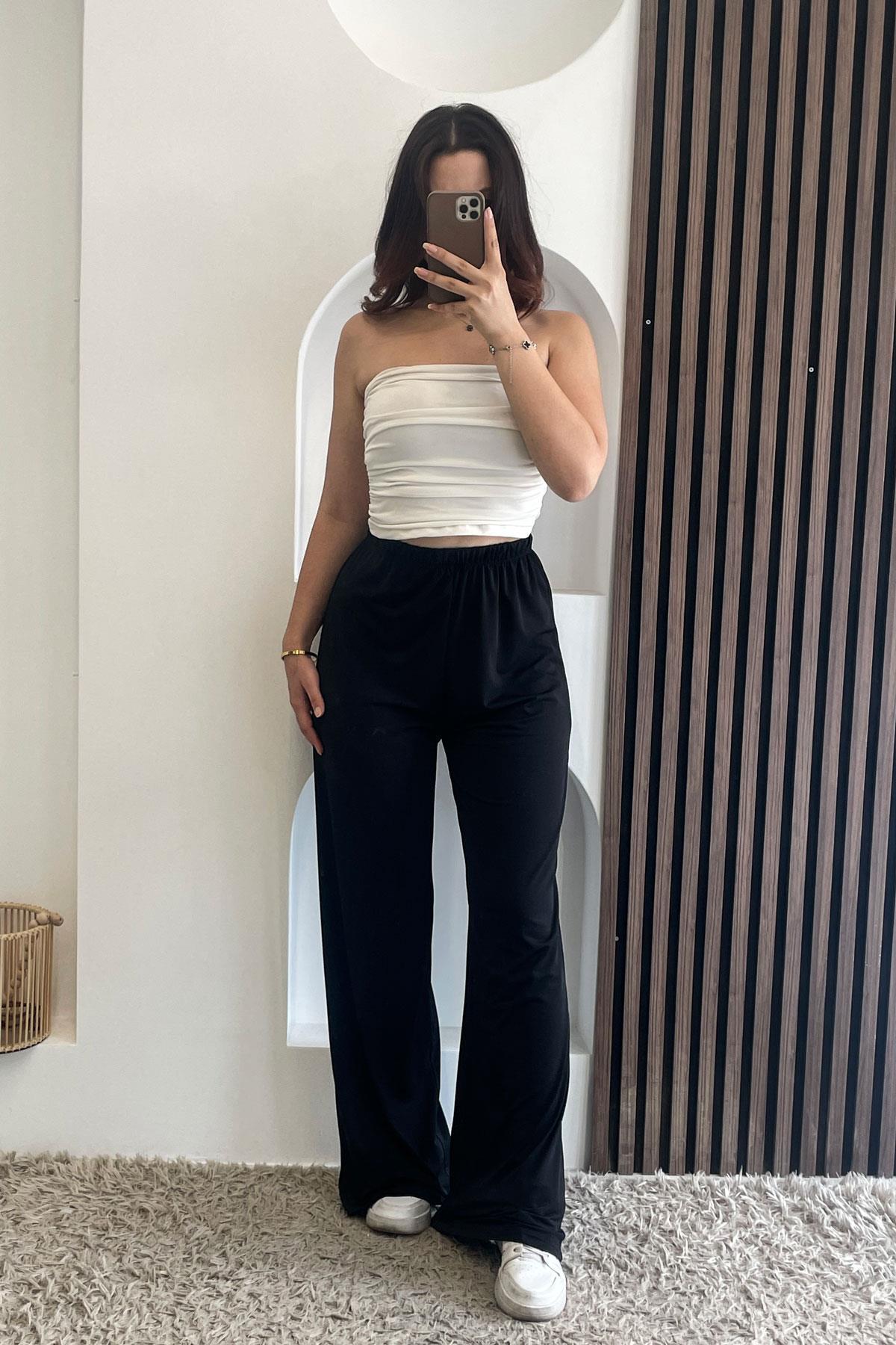 Bel Lastikli Palazzo Salaş Pantolon - Siyah