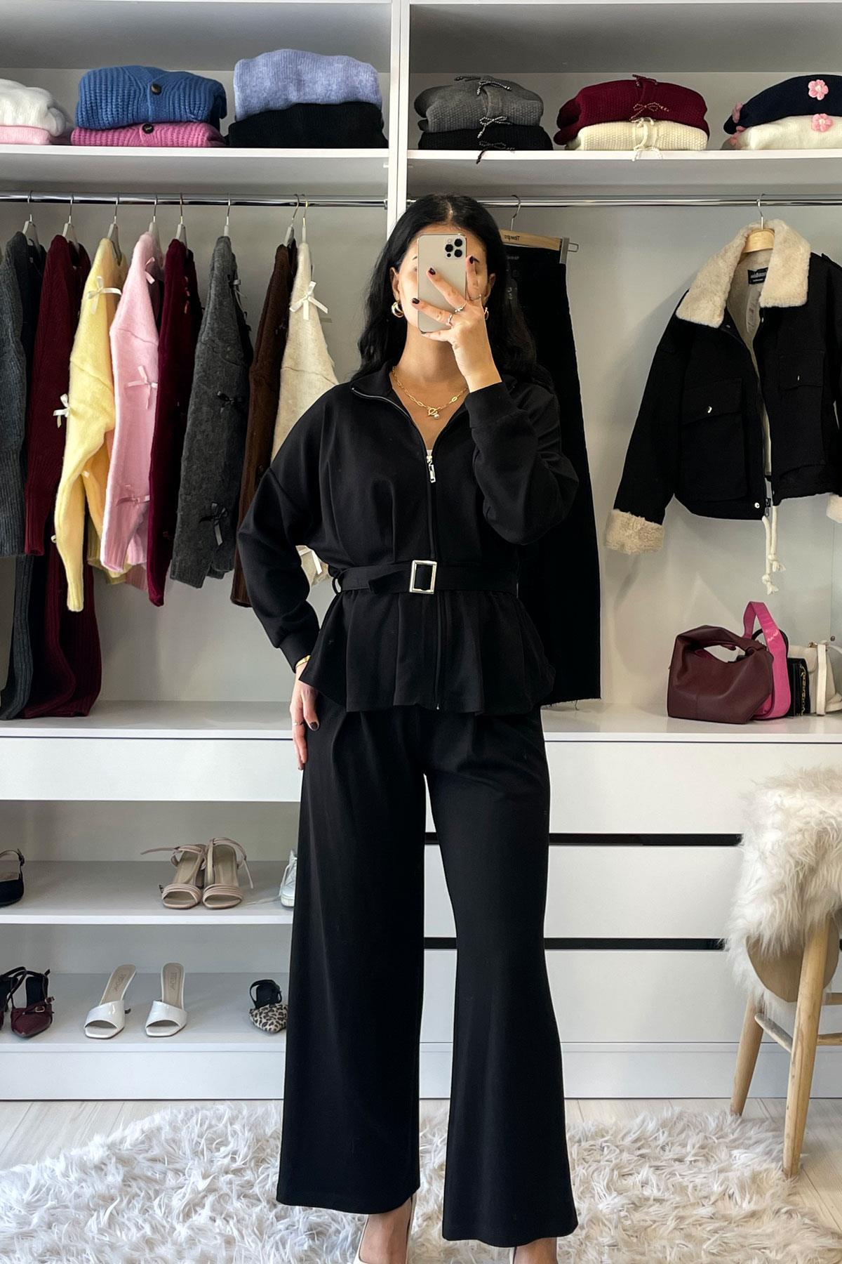Bel Oturtma Kuşaklı İkili Takım - Siyah