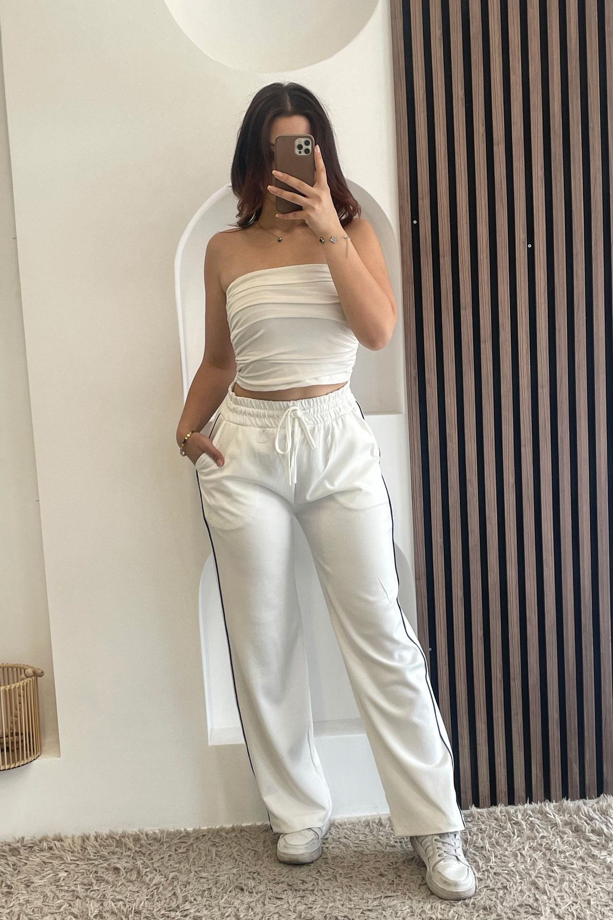 Boydan Şeritli Bel Ayarlamalı Oysho Pantolon - Ekru