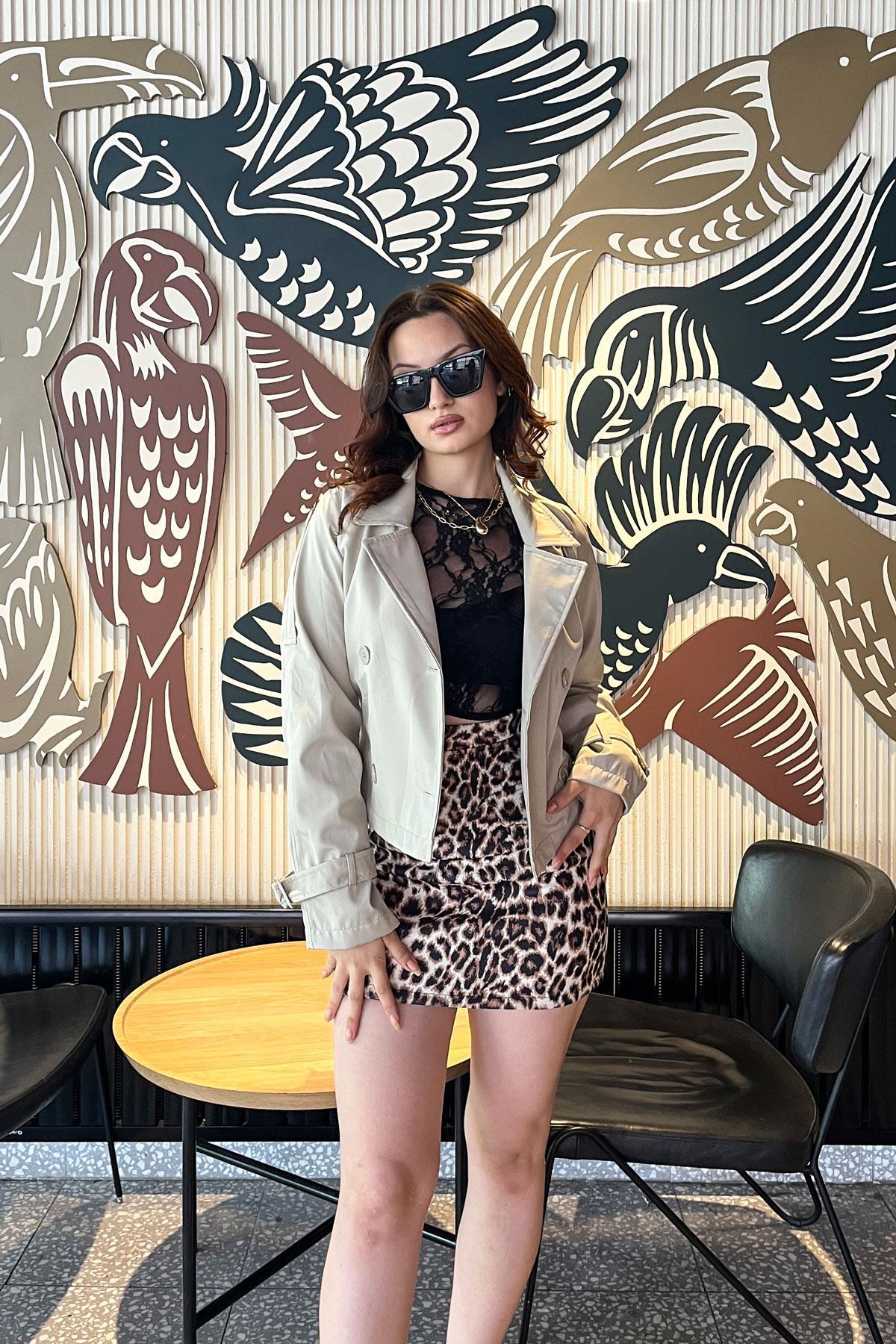 Düğme Detay Kuşaklı Kısa Trençkot-Krem