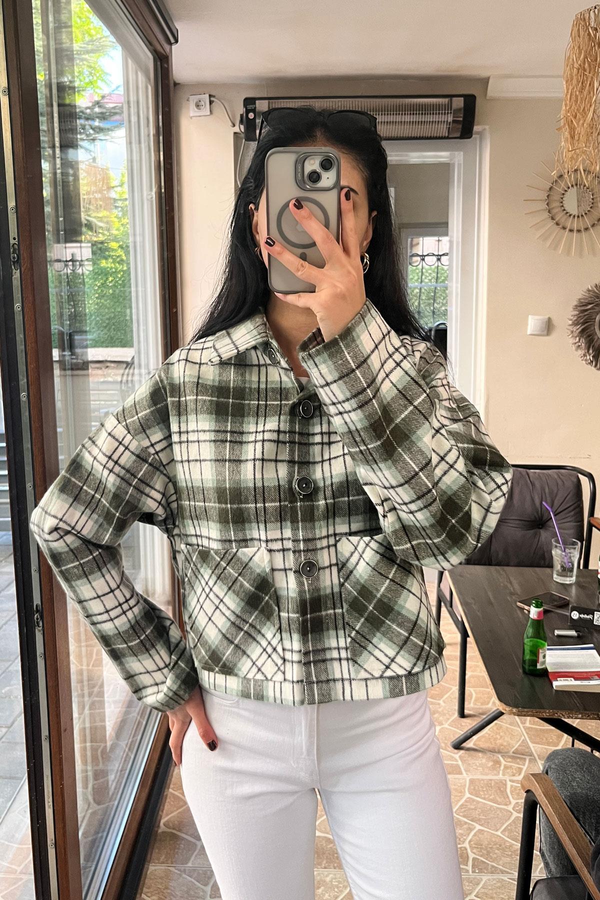 Ekose Desen Crop Kaşe Gömlek - Yeşil
