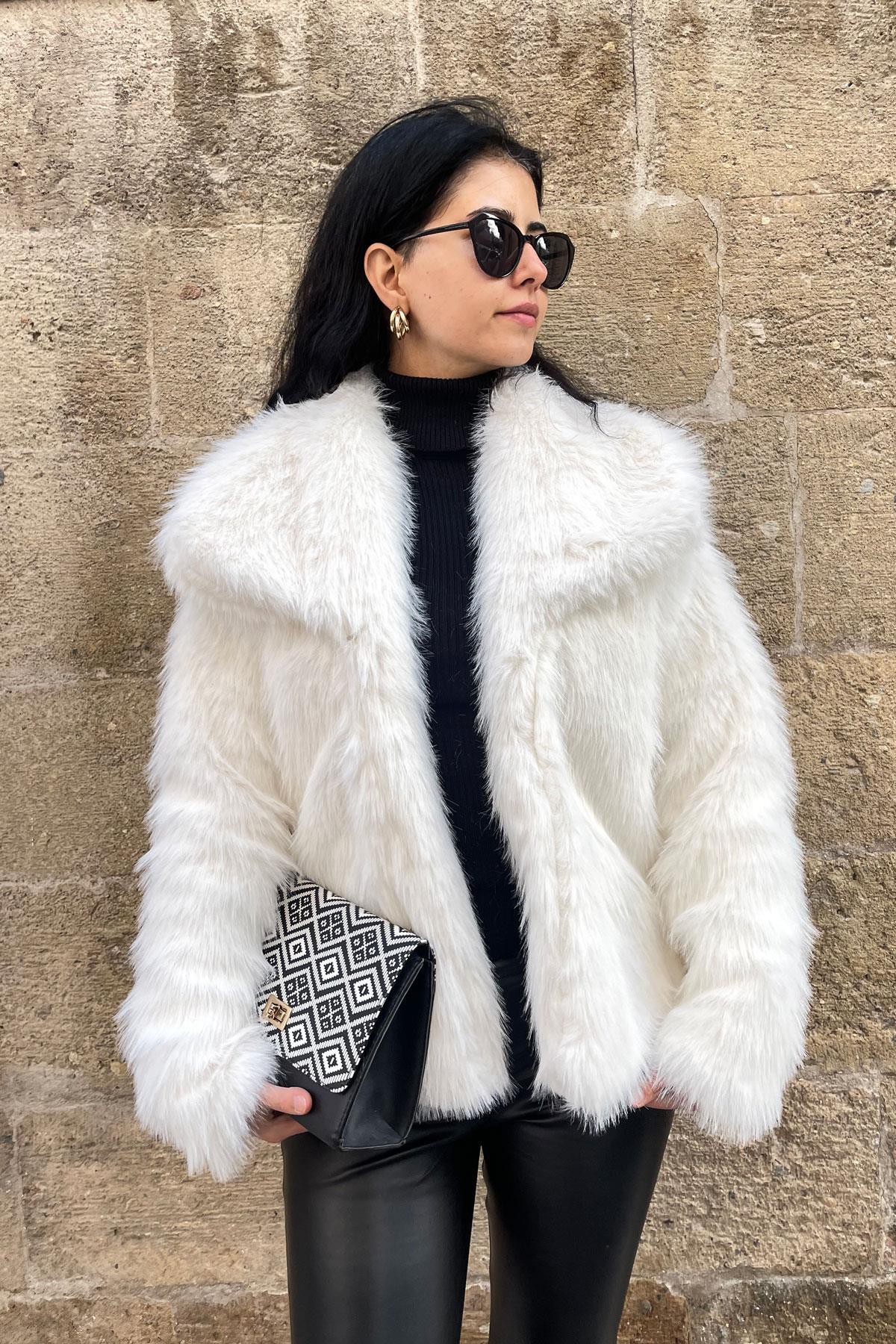Luna Premium Kürk Mont - Ekru