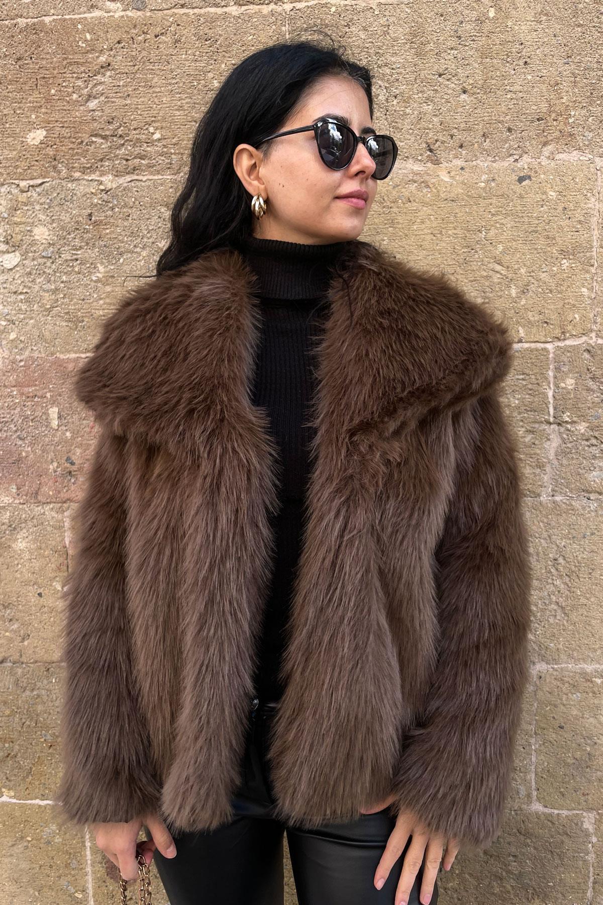 Luna Premium Kürk Mont - Kahve