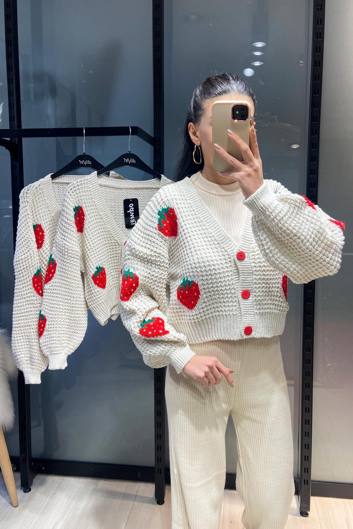 Balon Kol Çilek Hırka - Taş (NN1122-157)