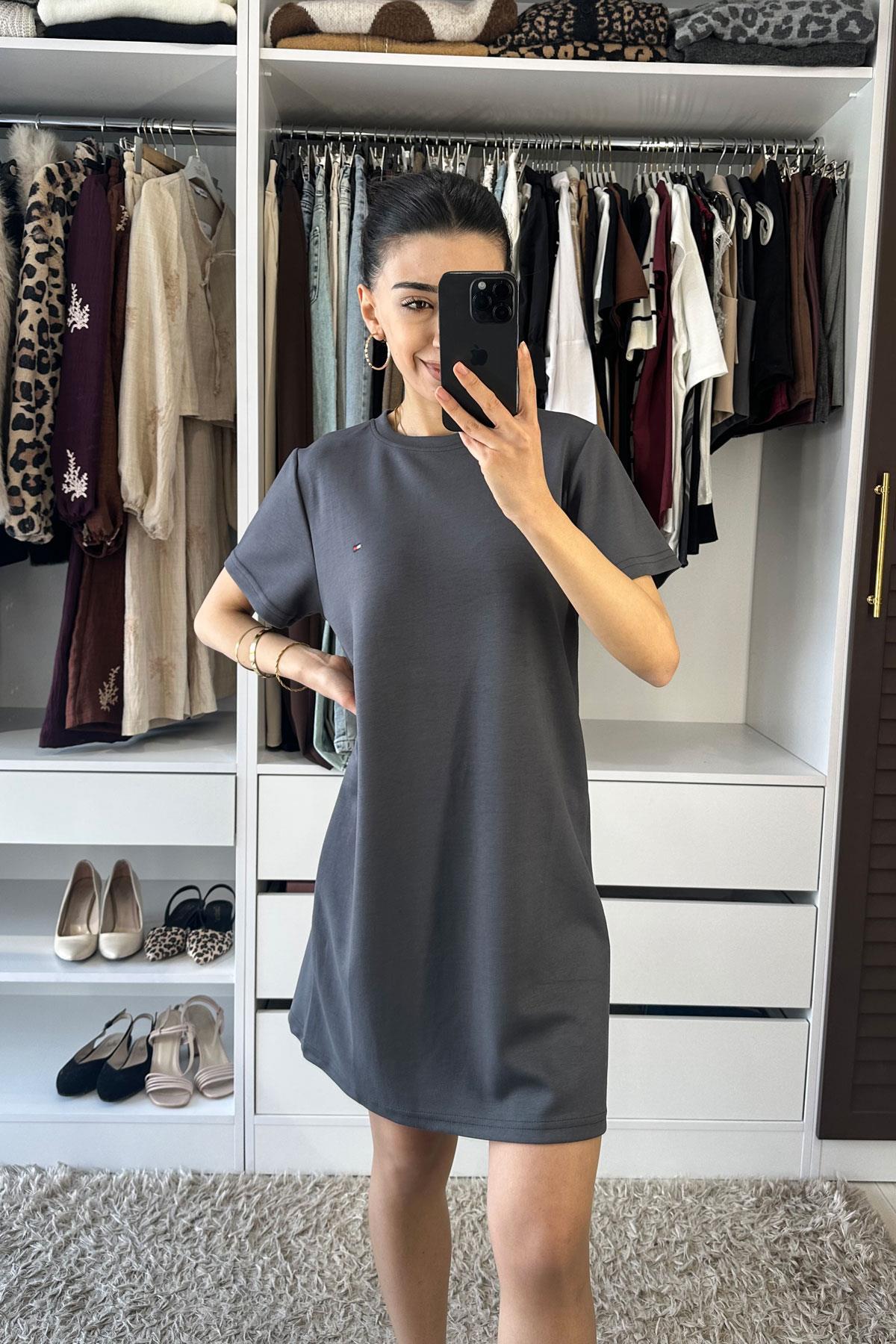 Orjinal Marka Kısa Kol Basic Elbise - Antrasit