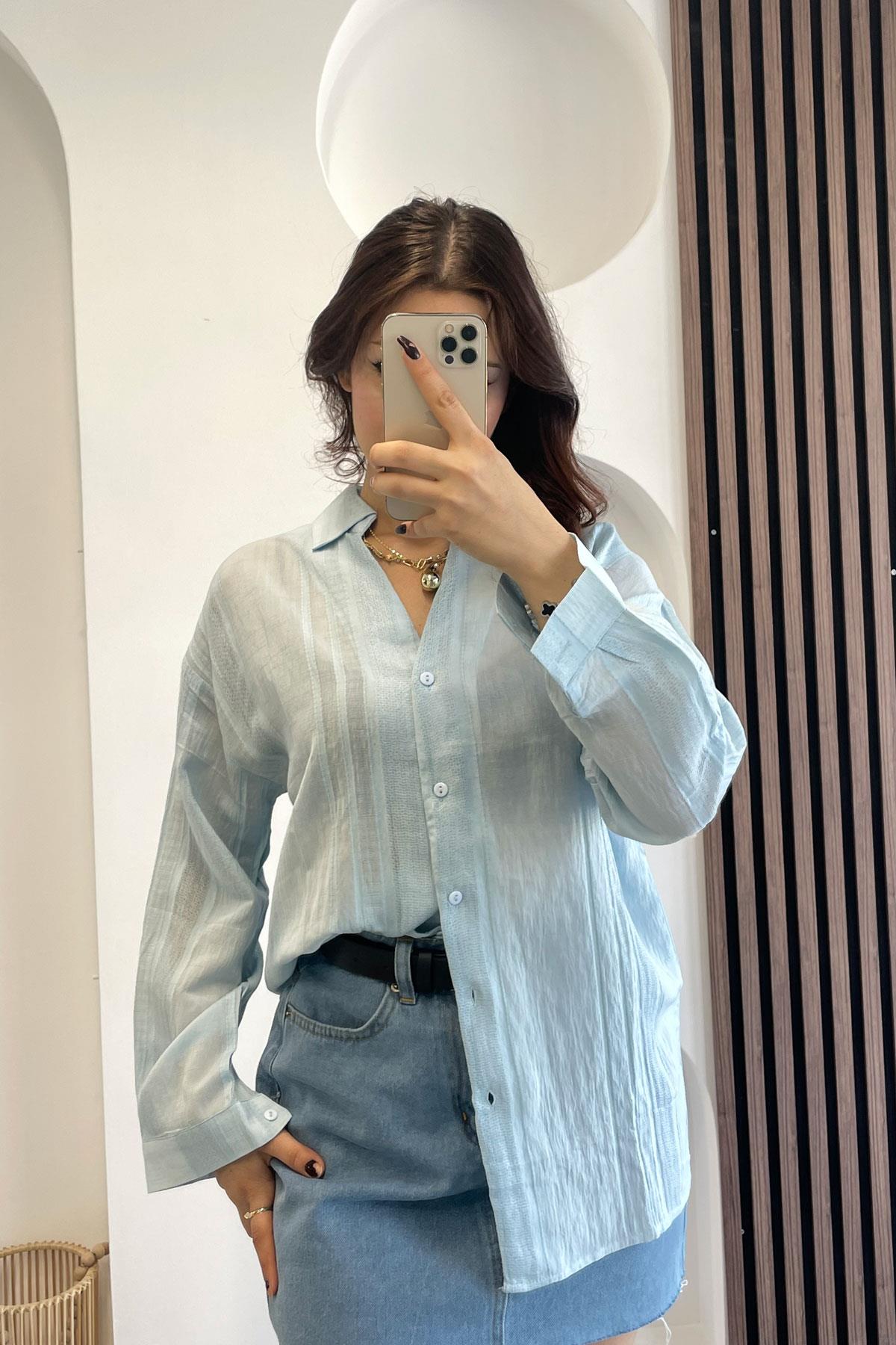 Transparan Şerit Detay Gömlek - Bebe Mavi