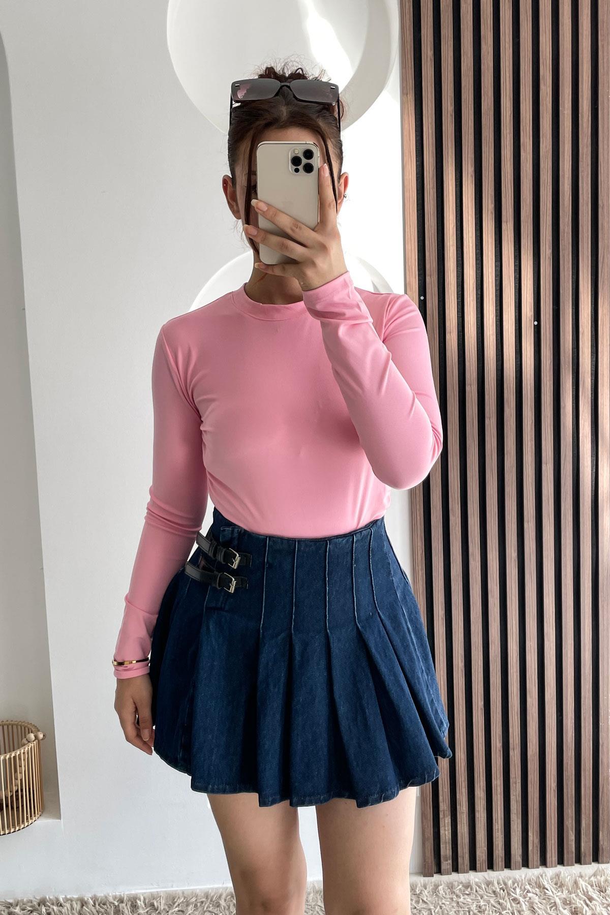 Yan Büzgülü Dalgıç Model Body-Pembe