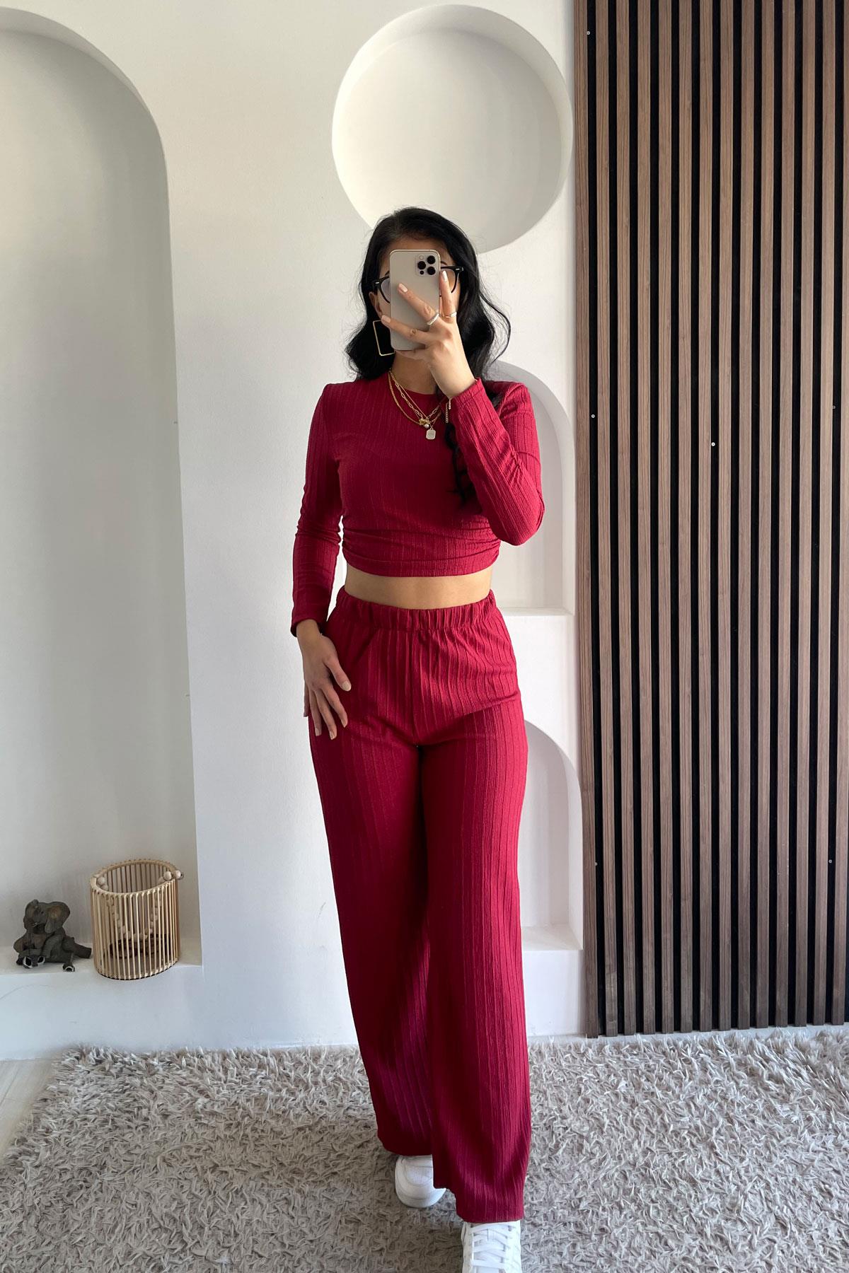 Yanı Büzgülü Irmak Takım - Kırmızı