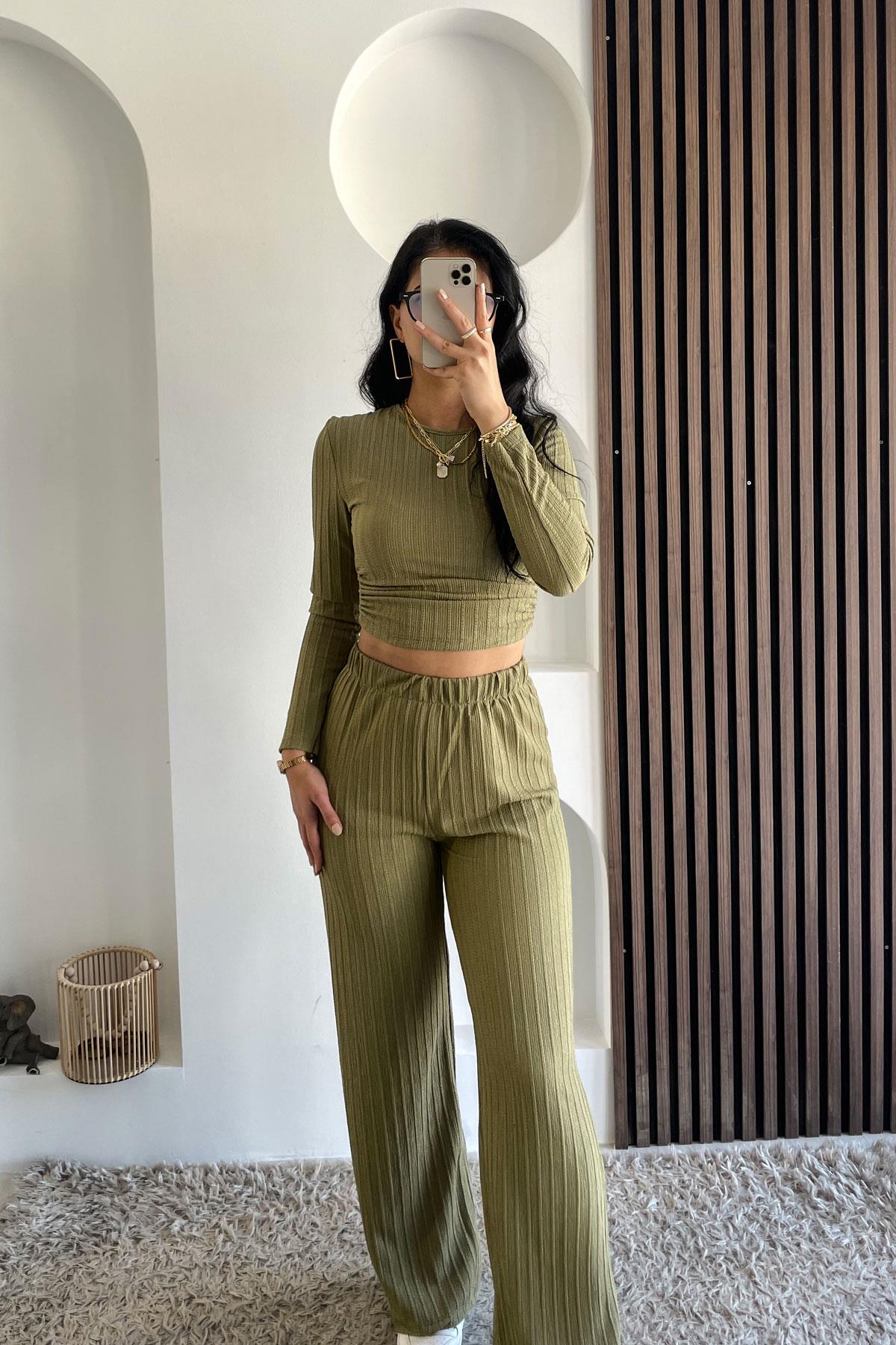 Yanı Büzgülü Irmak Takım - Yağ Yeşili